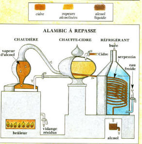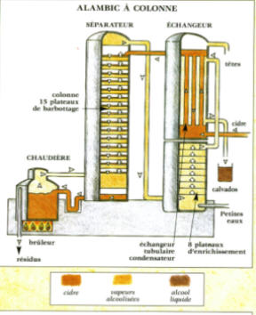 Le cidre qui n'est pas mis en bouteilles continuera de fermenter jusqu'à transformation complète du sucre en alcool. Il sera alors distillé pour nous donner l'eau de vie de cidre qui, si elle est produite dans la zone délimitée pourra bénéficier de l'appellation Calvados ce qui est le cas chez nous. A noter qu'il n'est pas nécessaire de soutirer le cidre destiné à être distillé, il restera sur lie.