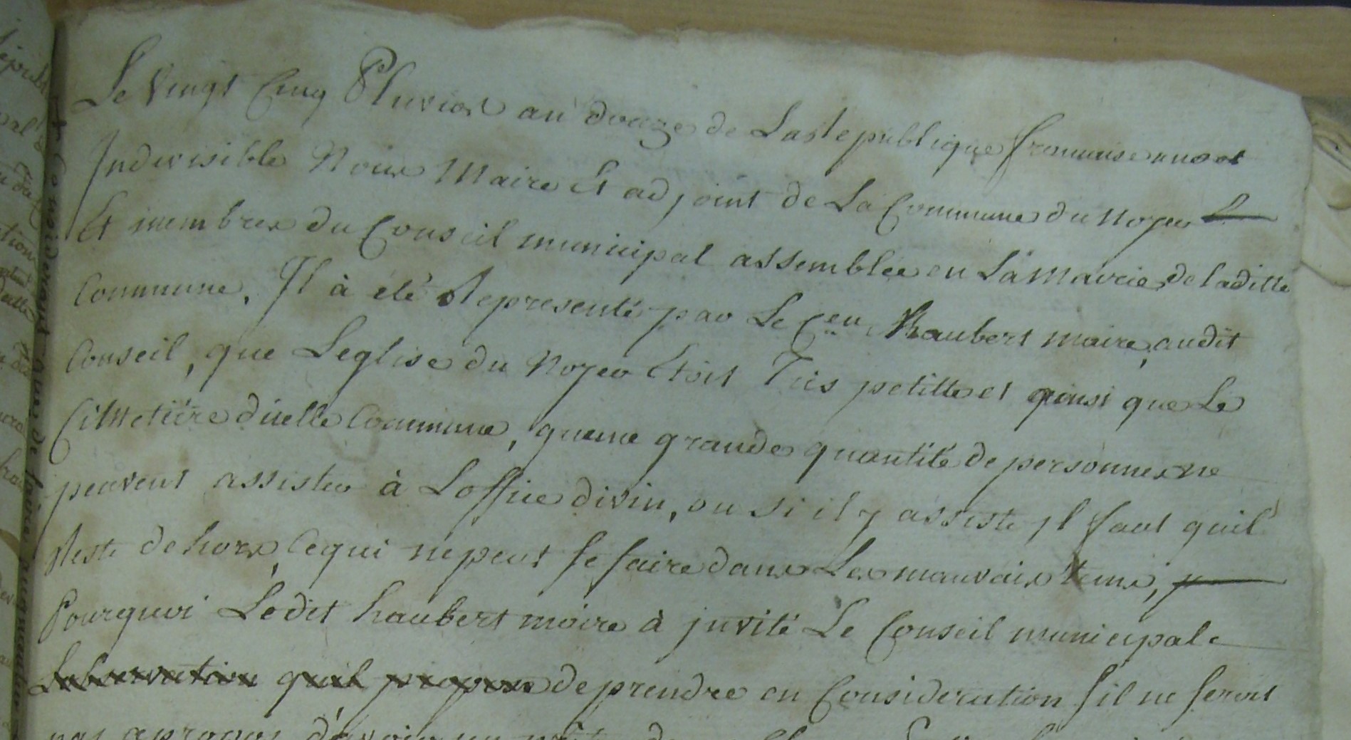 Fait-il bon, vivre au Noyer ? Pour reconstituer l'histoire d'un village et de ses habitants, il est une source incontournable que l'on consulte en premier lieu : les registres paroissiaux qui, au gré de leur lecture peuvent révéler des anecdotes curieuses ou inattendues. Le plus ancien registre de la paroisse du Noyer commence en 1669, la vue 33 ( https://archives.eure.fr/ark:/26335/a0114407454217tAd6Z/4897141783 )représentant un acte du 22 mars 1685 nous apporte un élément qui pourrait nous orienter vers la réponse à la question posée en introduction... Le Noyer avait en 1685 parmi ses habitants son centenaire !!! Cet acte concerne Michel Védie âgé environ de cent ans décédé le vingt deuxième de mars 1685 et inhumé le lendemain dans le cimetière de la paroisse par Jacques Billard, Prêtre, curé du lieu. Voilà donc une belle entrée en matière... pour cette page d'histoire, aussi modeste soit-elle, que je souhaite partager avec tous. René Lesur |