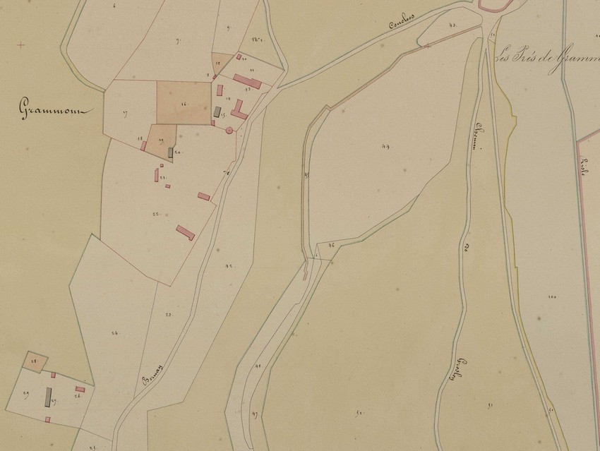 Intéressons-nous aux propriétés bâties de Grandmont : le plan de section peut recouvrir plusieurs hameaux , ou parties.