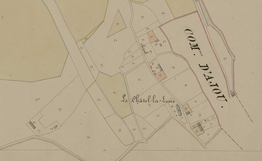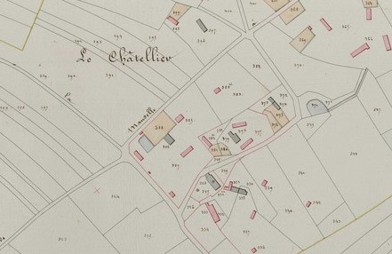 Note : sur la matrice cadastrale de 1834, les maisons de La Noé (13) ont été classées au Chatelier. Il en est de même pour la Jouinnière - ou Jouannière sur le plan - (maison C93).
